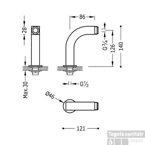 Tres Cuadro Inbouw Badthermostaat Combinatie Met Handdouche En Waterval Baduitloop Staal 20735305AC