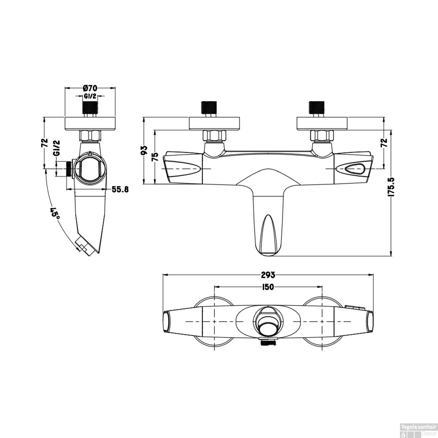 Specificaties van de Boss & Wessing Aloni thermostatische badkraan