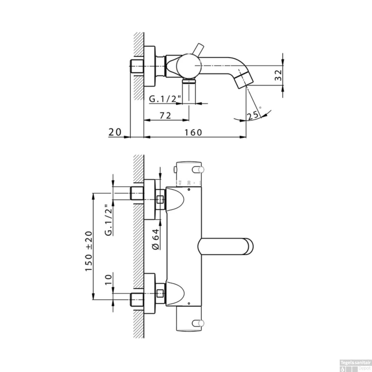 - – Hoogte uitloop: 3.2 cm