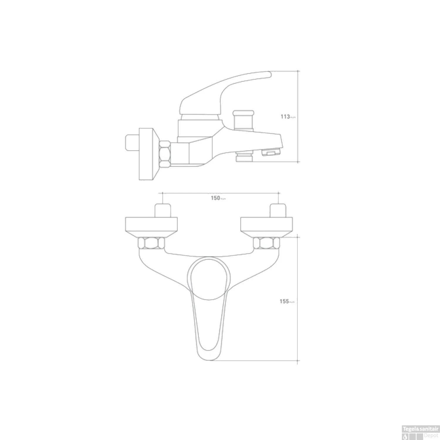 Praktisch om te weten is dat de hartafstand van de kraan 15cm is. Dat is de afstand waarmee de buizen voor warm en koud water uit de muren komen. Mocht u een oudere badkamer hebben en de badkraan willen vervangen kan het zijn dat de oude hartafstand 12cm is. Er worden S-koppelingen meegeleverd om de afstand van 12cm naar 15cm te krijgen.
