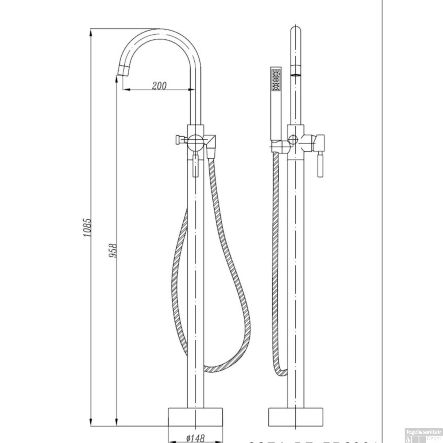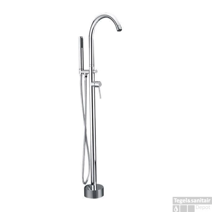 Schitterende hoogronde vrijstaande badkraan wat een mooie combinatie is met een vrijstaand bad. Bij deze kraan zit eveneens een handdouche meegeleverd om bijvoorbeeld u af te spoelen na het baden.