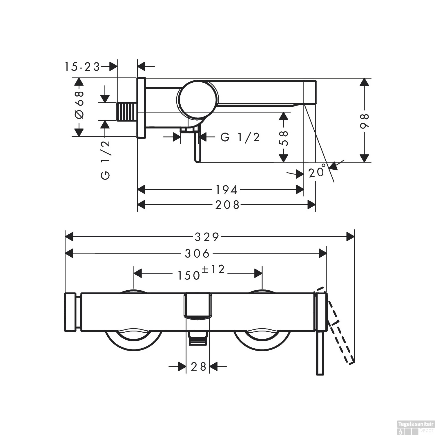 Specificaties Badmengkraan Opbouw Finoris HansGrohe Eengreeps Chroom: