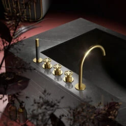 Badrandcombinatie Hotbath Cobber @Work Inbouw 5 Gats Met 2 Stopkranen En Handdouche Met Uitloop Geborsteld Messing PVD