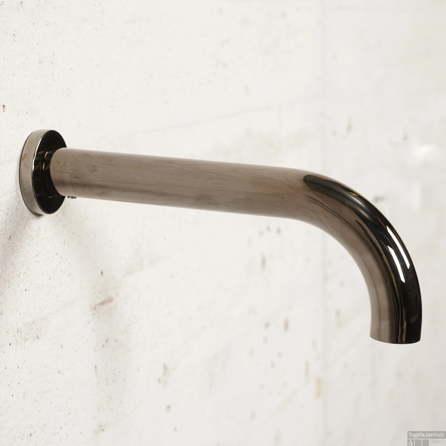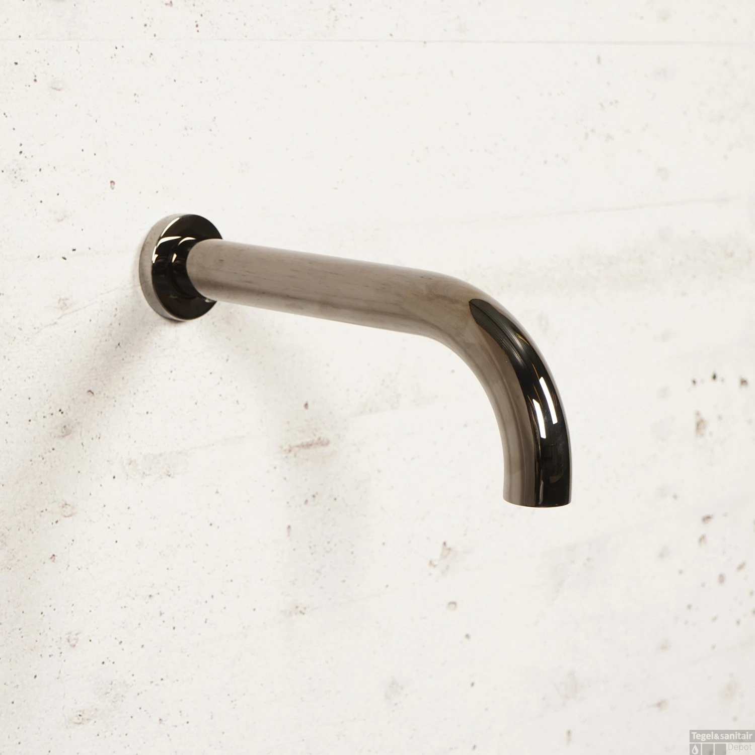 Deze mooie baduitloop van het merk Salenzi komt uit de serie Giro. Hij is gemaakt van messing met een kleurcoating. Bij deze kraan is dat een Black Chromen coating wat ervoor zorgt dat deze kraan een luxe uitstraling krijgt. De uitloop heeft een lengte van 20 cm en wordt geleverd met de ring die aan de achterkant bevestigd zit en het bevestigingsmateriaal.