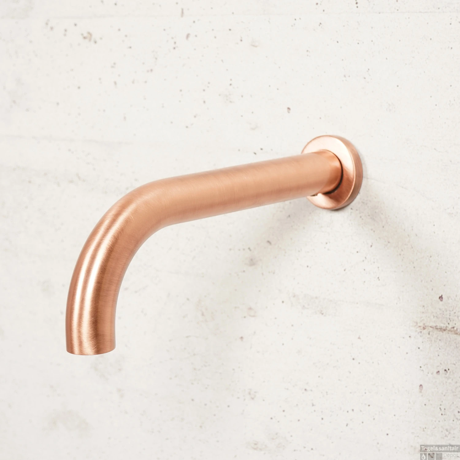 Deze mooie baduitloop van het merk Salenzi komt uit de serie Giro. Hij is gemaakt van messing met een kleurcoating. Bij deze kraan is dat een Koperen coating wat ervoor zorgt dat deze kraan een luxe uitstraling krijgt. De uitloop heeft een lengte van 20 cm en wordt geleverd met de ring die aan de achterkant bevestigd zit en het bevestigingsmateriaal.