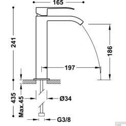 Wastafelmengkraan Tres Cuadro 1-Hendel Uitloop Gebogen Hoog 24 Cm Met Waterval Vierkant Mat Wit
