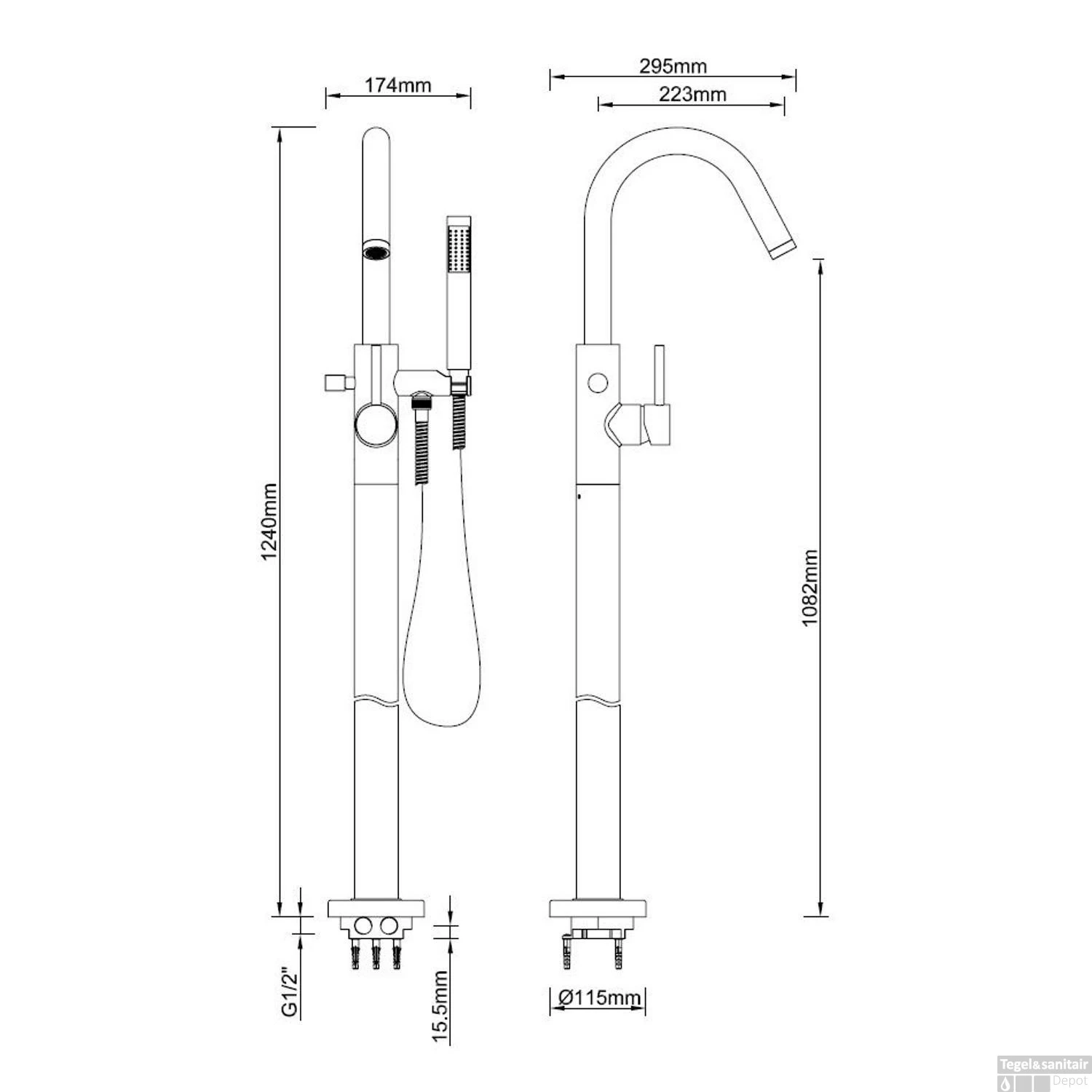 Specificaties BWS Badkraan Cemal Vrijstaand Mengkraan Compleet Mat Zwart: