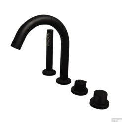 Een mat zwarte thermostatische badkraan is de eyecatcher van uw badkamer! In combinatie met andere zwarte elementen creëert u een badkamer rijk aan design! De mooie zwarte afbouwset is een 4-gats badkraan. Gat 1 bevat de verzonken ronde staaf handdouche, gat 2 is de bad uitloop, gat 3 is de knop waarmee u de kraan aan en uit kunt zetten en bepaald uit welke uitloop het water komt (uit de uitloop of uit de handdouche). De laatste knop, gat 4, is de thermostaat. De thermostaatkraan heeft een temperatuurbegrenzer zodat de kans op verbranden aanzienlijk verkleind kan worden. Daarnaast heeft de temperatuurregelaar als voordeel dat u de thermostaat kan instellen op een gewenste temperatuur. Elke keer als u gebruik maakt van de kraan zal het water de ingestelde temperatuur aannemen.