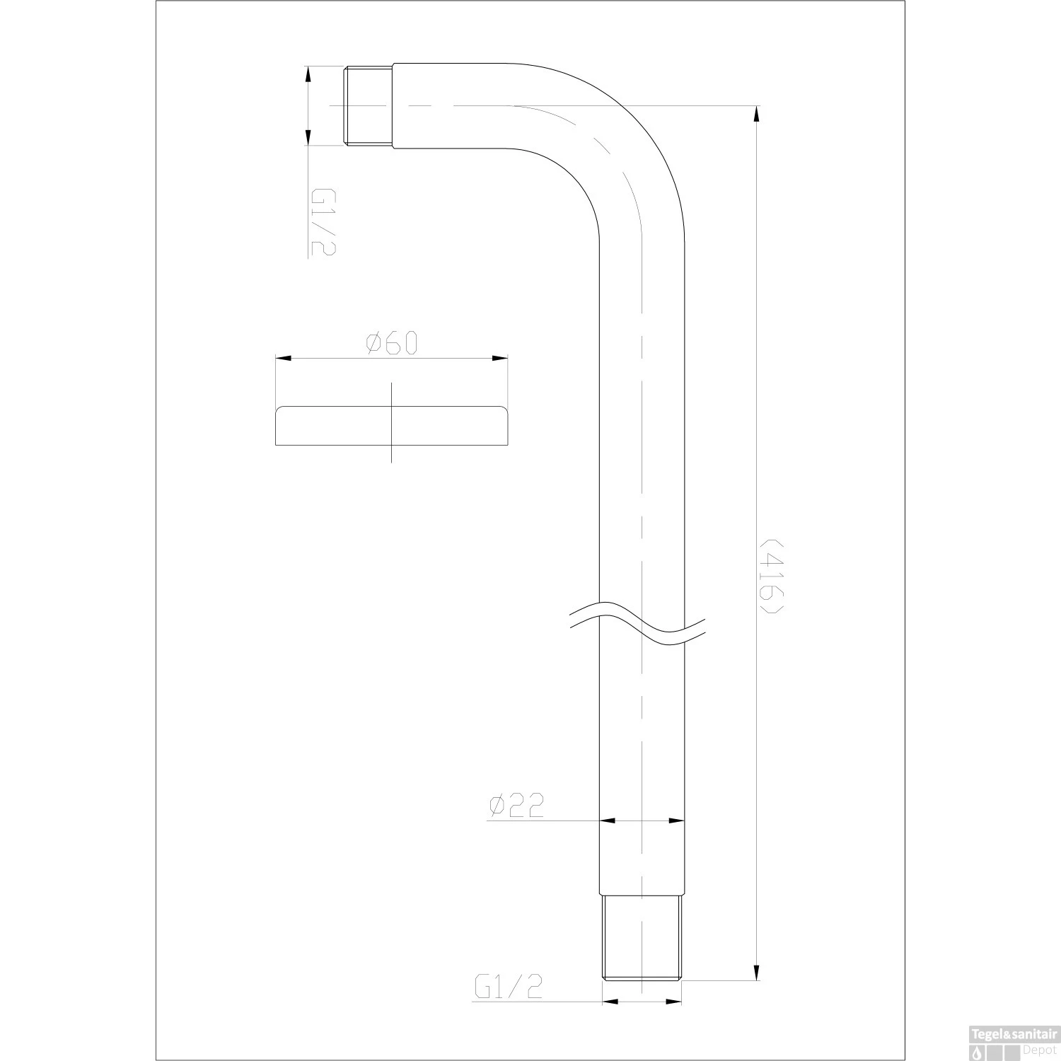 Specificaties BWS Douchearm Hera Muurbevestiging Gebogen Rond 40 cm RVS :