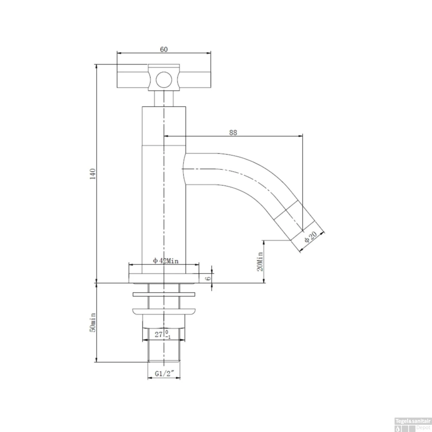 Fonteinkraan van het merk Boss & Wessing staat garant voor kwaliteit en een lange levensduur. Deze fonteinkraan is vervaardigd uit messing verchroomd metaal. Keramische schijven zorgen voor een soepele open en sluiten van de fonteinkraan, eveneens zorgen deze voor een langdurig gebruik zonder lekkage.
