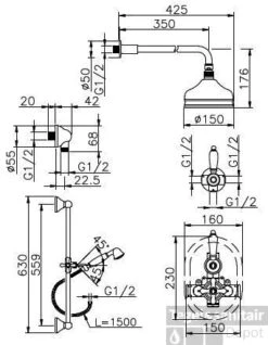 De opbouwset is voorzien van staaf handdouche met slang van 150cm en een hoofddouche met een diameter van 20cm. De thermostatische kraan is voorzien van 2 knoppen. Een bedieningsknop is voor de thermostaat en de andere bedieningsknop gebruikt u om de kraan mee aan of uit te zetten. Tevens kunt u bepalen welke van de twee aansluitingen u wilt gebruiken. De thermostaat heeft een temperatuurbegrenzer en temperatuurregelaar voor een constante temperatuur. De kraan heeft keramische schijven die zorgen voor een lange levensduur van de kraan. Dat komt omdat het keramisch binnenwerk de hendel jaren lang soepel houdt in zijn beweging om water door te laten en de kraan goed te sluiten.