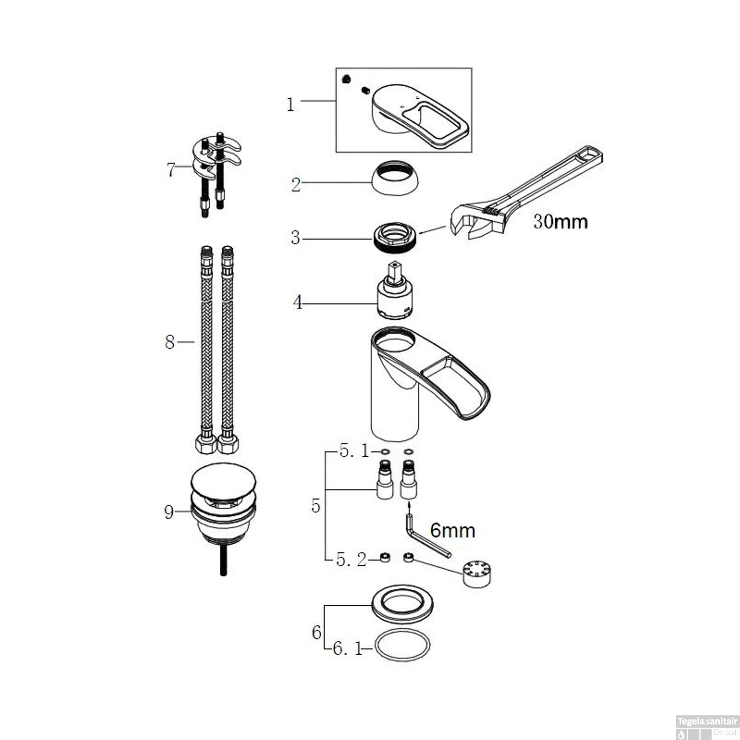 - – Ééngats wastafelkraan