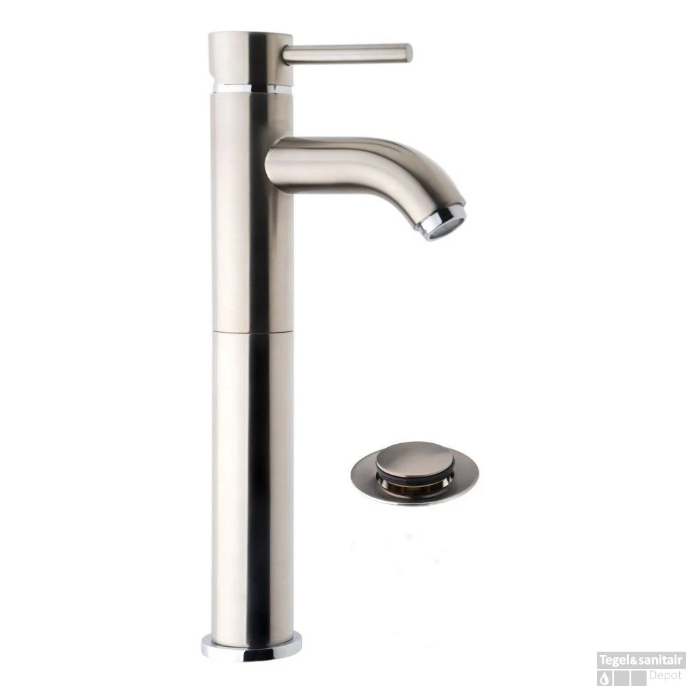 Specificaties BWS Wastafelmengkraan Chepri Hoog met Clickwaste RVS Look: