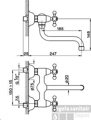 Hoogte 150 mm Aantal Gaten 2 Kleur Chroom Lengte uitloop 247 mm Merk Cisal Serie Arcana Sfeerbeeld Nostalgisch Handdouche Geen Uitvoering Muurkraan Artikelnummer AC00040021 Fabrieksartikelnummer AC00040021