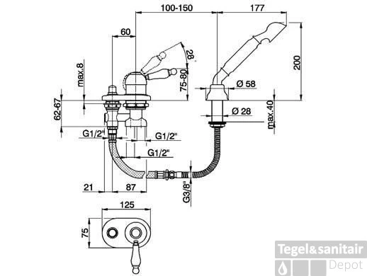 Tres Cuadro Inbouw Badthermostaat Combinatie Met Handdouche En Waterval Baduitloop Staal 20735305AC