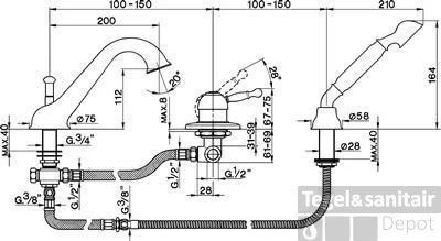 Merk Cisal Inbouw Thermostatisch Met douchegarnituur Lengte uitloop 200 mm Aantal Gaten 3-gats Uitvoering Badrand Sfeerbeeld Nostalgisch Kleur RVS Serie Arcana Royal Artikelnummer AY0012602A Fabrieksartikelnummer AY0012602A