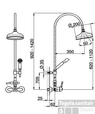 Doucheset Tres Classic Telescopische Glijstang Met Antikalk Handdouche Verouderd Messing Mat