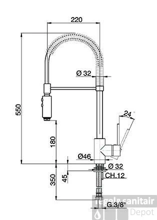 Merk Cisal Kleur Chroom Hoogte 550 mm Lengte uitloop 220 mm Handdouche Met kolom en veer Sfeerbeeld Modern Aantal Gaten 1 Uitvoering Enkele kraan Artikelnummer LL00064121 Fabrieksartikelnummer LL00064121