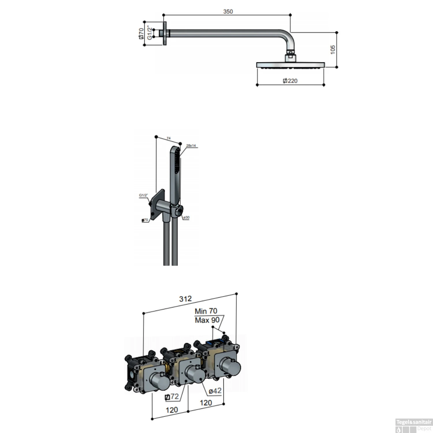 Specificaties Complete Regendouche Hotbath Gal IBS40 Inbouwset Met 2 Stopkranen 3 Knoppen: