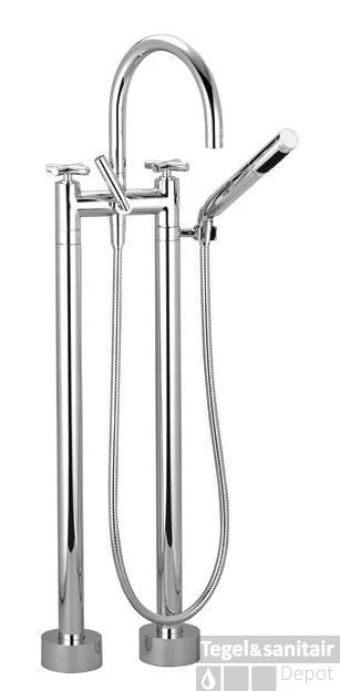 Badkraan staand met s-kopp.met garn.en kruisgreep