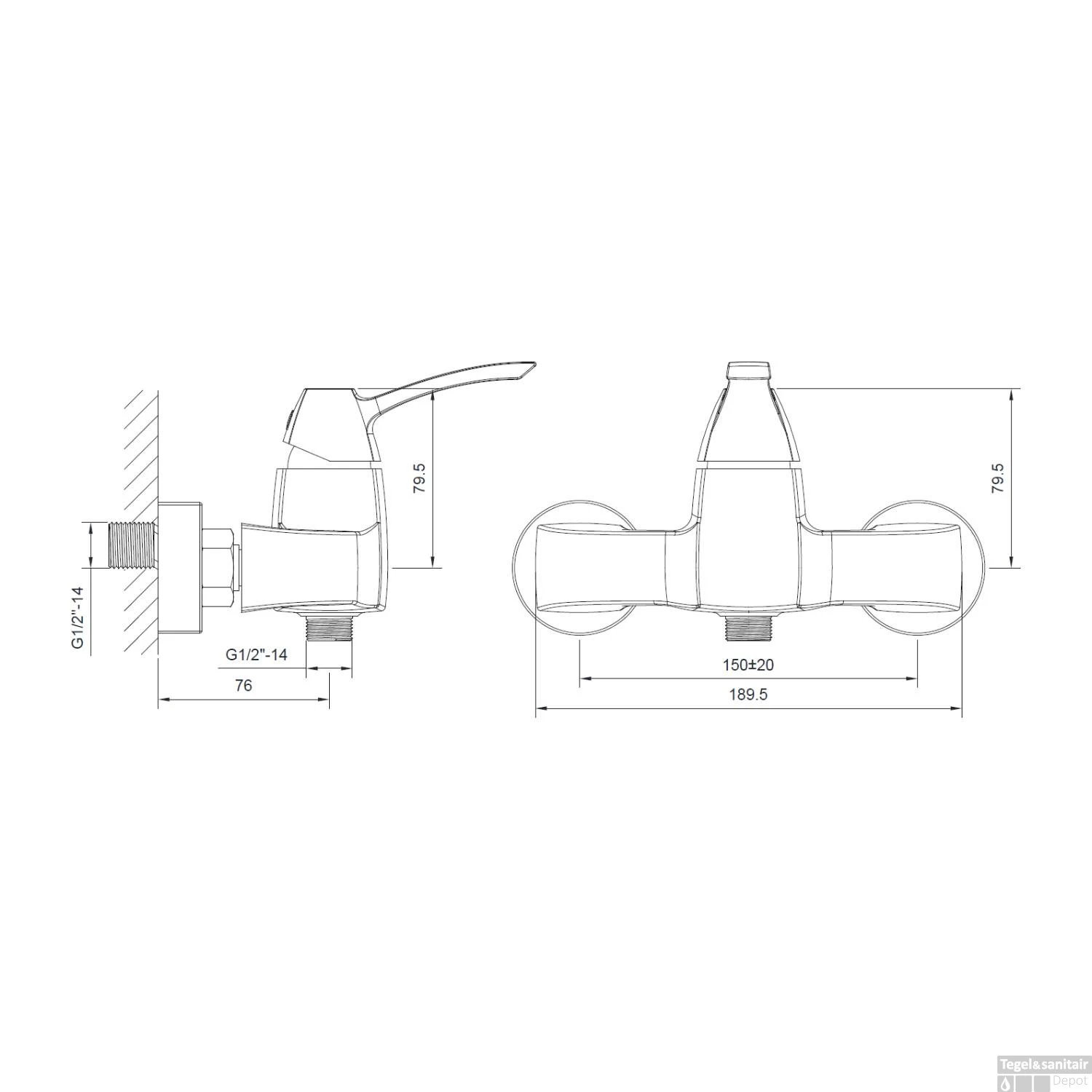 Specificaties Douchekraan Opbouw Mengkraan 1-hendel Chroom Sapho Dreamart: