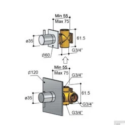 Inbouw Douchekraan Bongio Squandra Thermostatisch Met 2 Stopkranen En Installatiebrug Mat Zwart