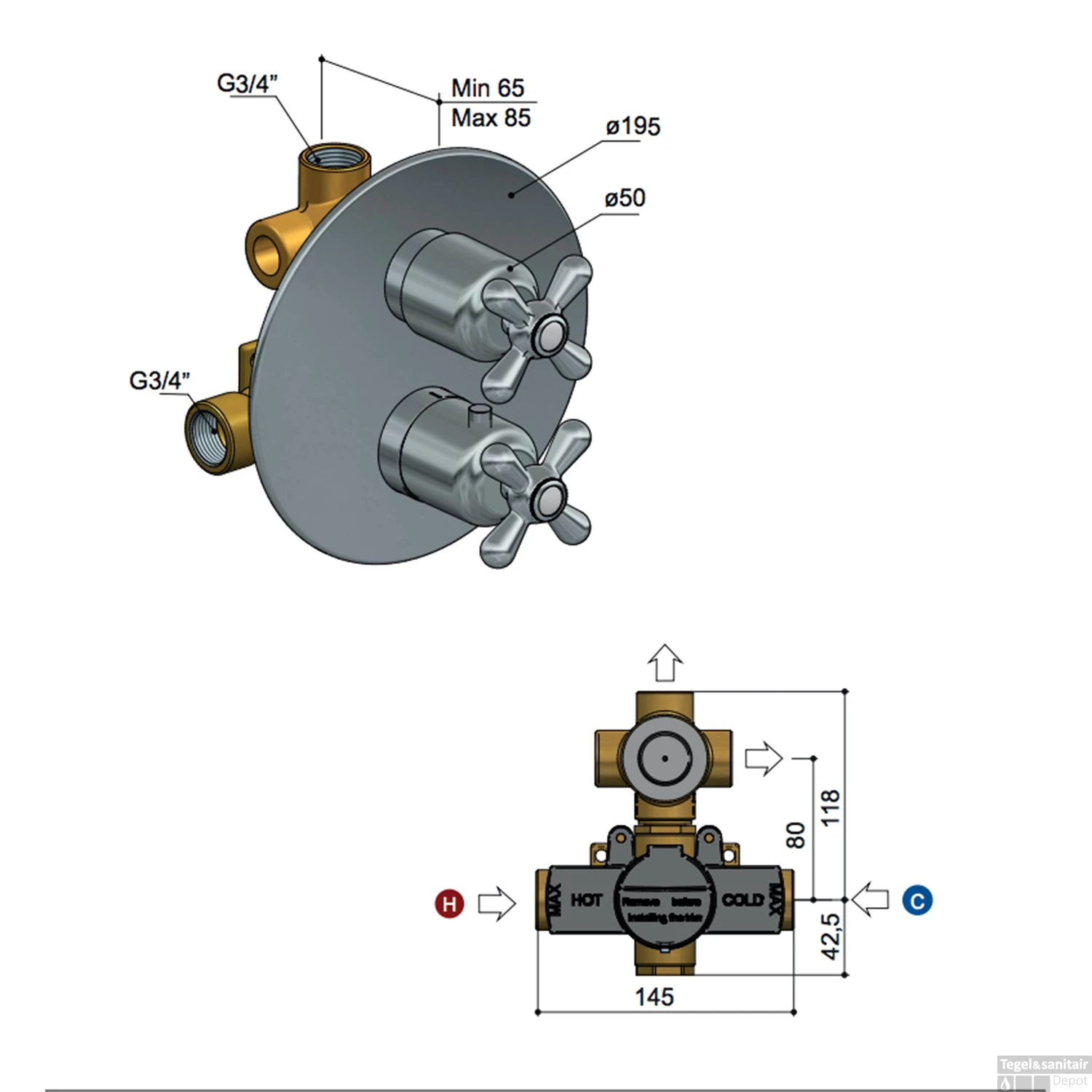 Specificaties Douchethermostaat Hotbath Amice Inbouw 2-weg Kruisgreep Verticaal Chroom:
