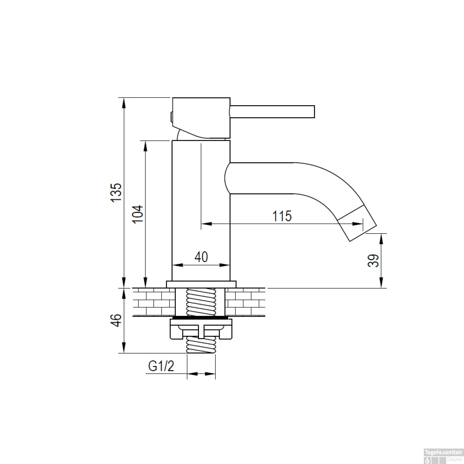 - Hoogte uitloop: 3.9 cm