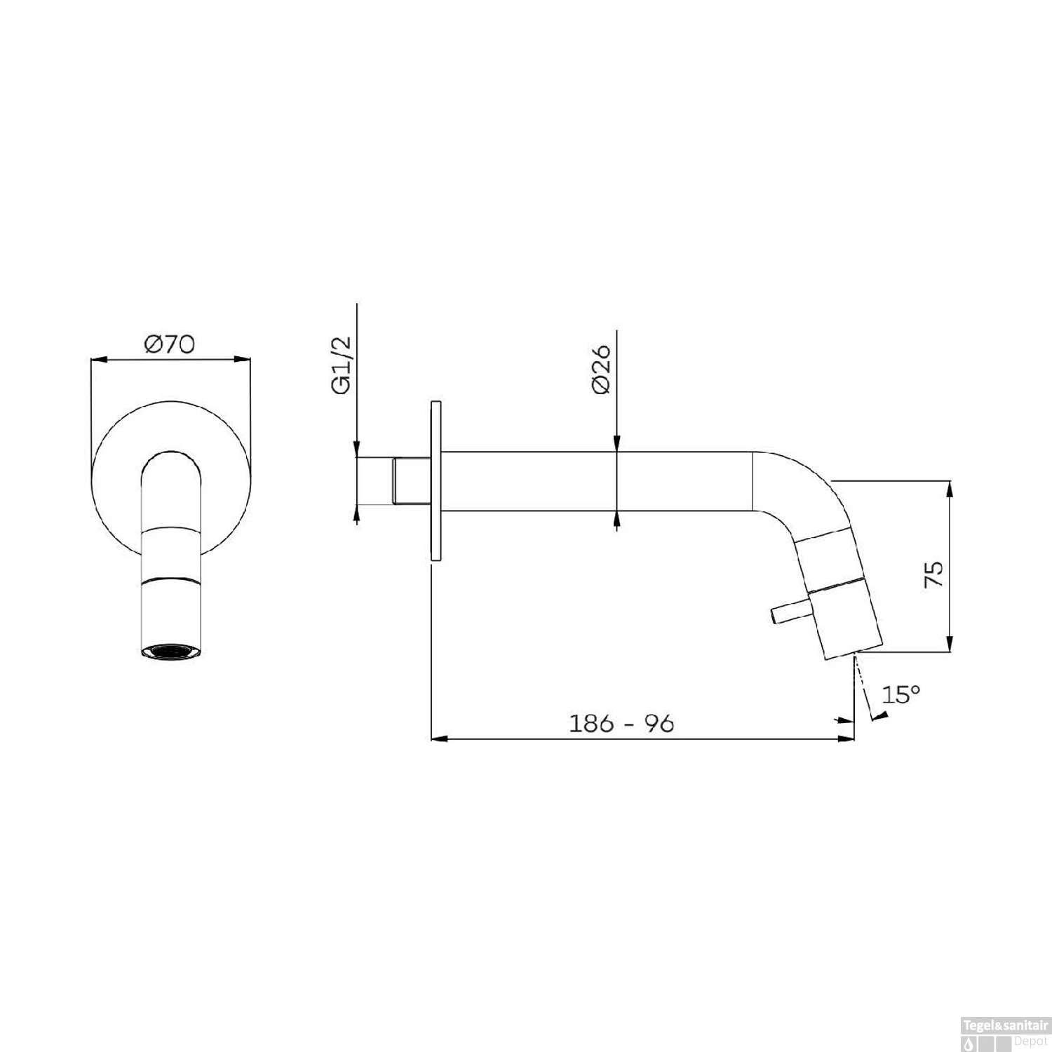 - Lengte uitloop: 19,6 cm