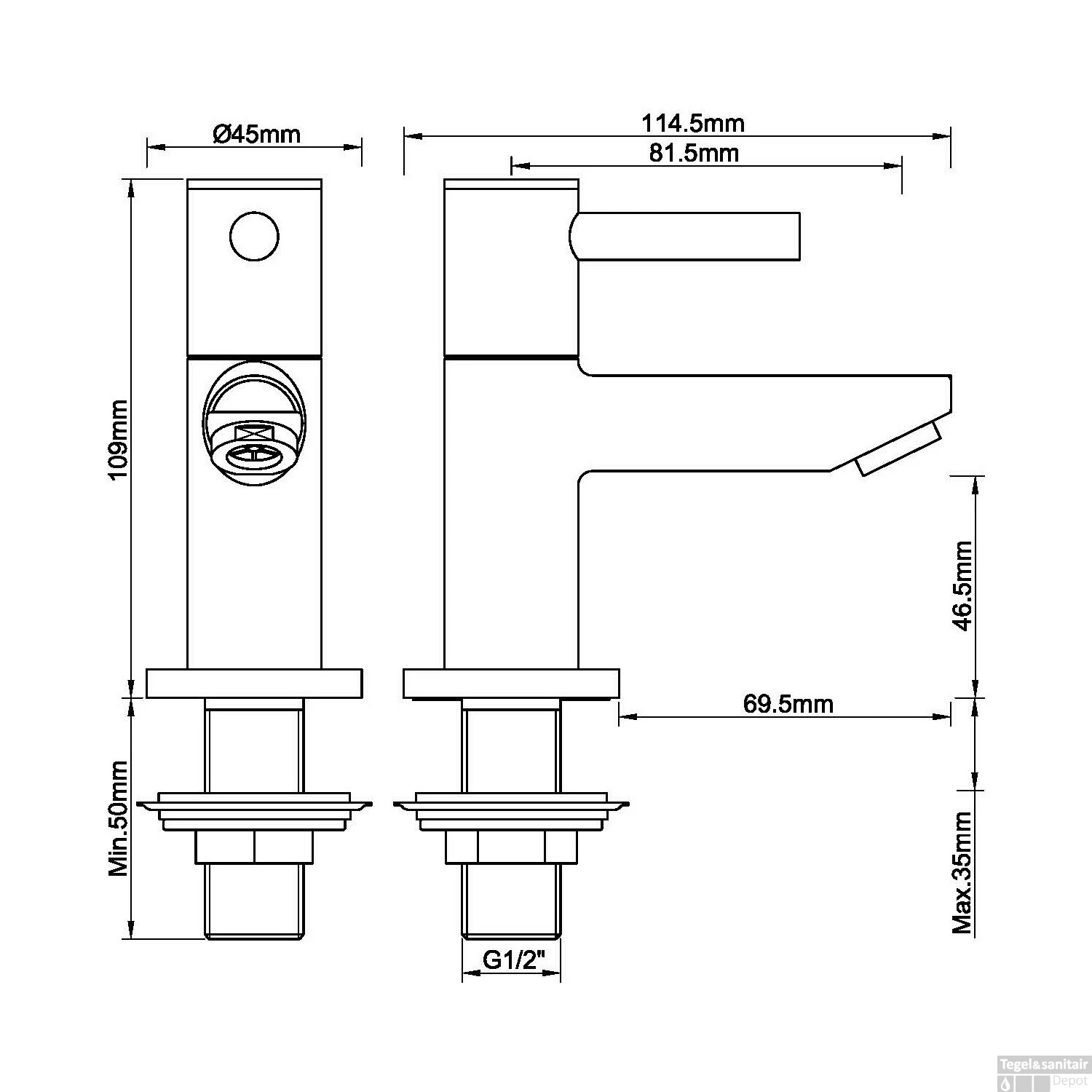 Het design is voorzien van een eenhendel waar u alleen koud water uit kunt tappen. Verder is het artikel voorzien van een perlator om lucht te mengen met water om daarmee water te besparen. De perlator zit schuin onder de uitloop, zodat u beter uw handen kunt wassen.