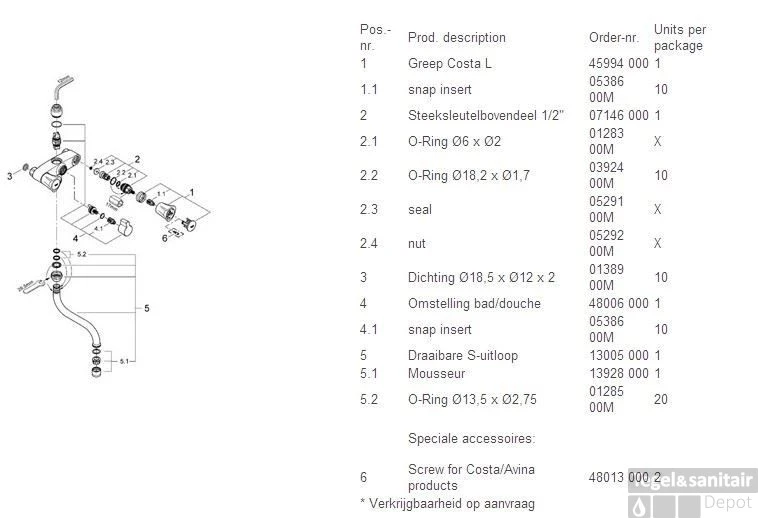Specificaties Grohe Costa-l Douchemengkraan 12 Cm. Met Omstel En Uitloop Chroom: