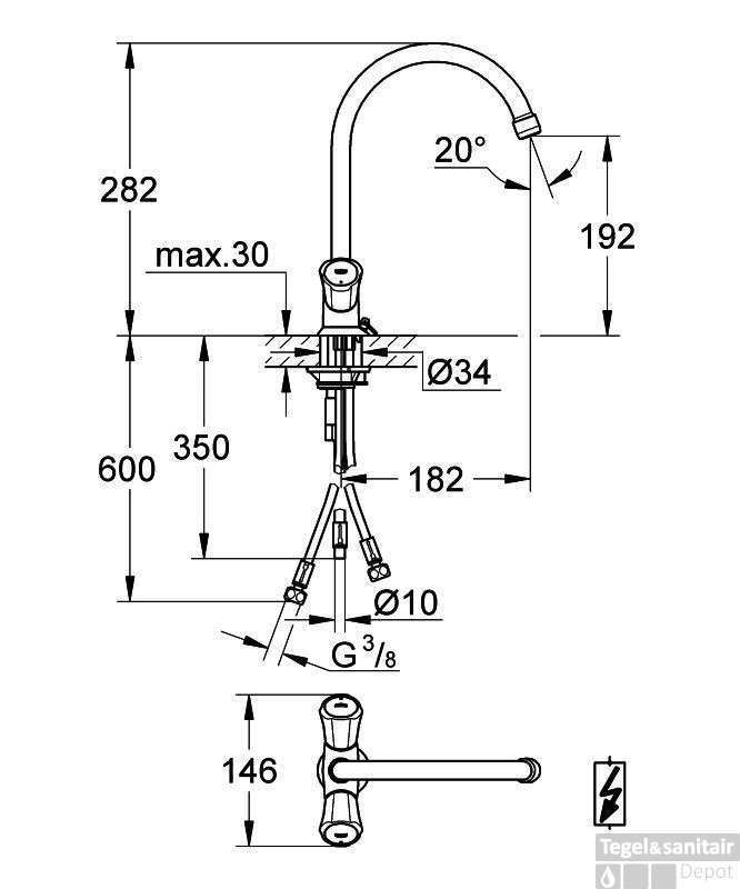 Tijdloze kraan van het merk Grohe uit de serie Costa-l levert kwaliteit en is makkelijk in gebruik ideaal voor in de keuken of als wastafelkraan. De keukenkraan heeft een uitloop van 18,3 cm. De kraan kan bediend worden met tweegrepen.