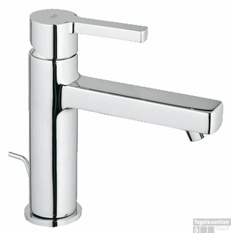 De Wastafelkraan Grohe Lineare Medium Met Trekwaste Chroom is een kraan met een tijdloos design, die nagenoeg in iedere badkamer past.