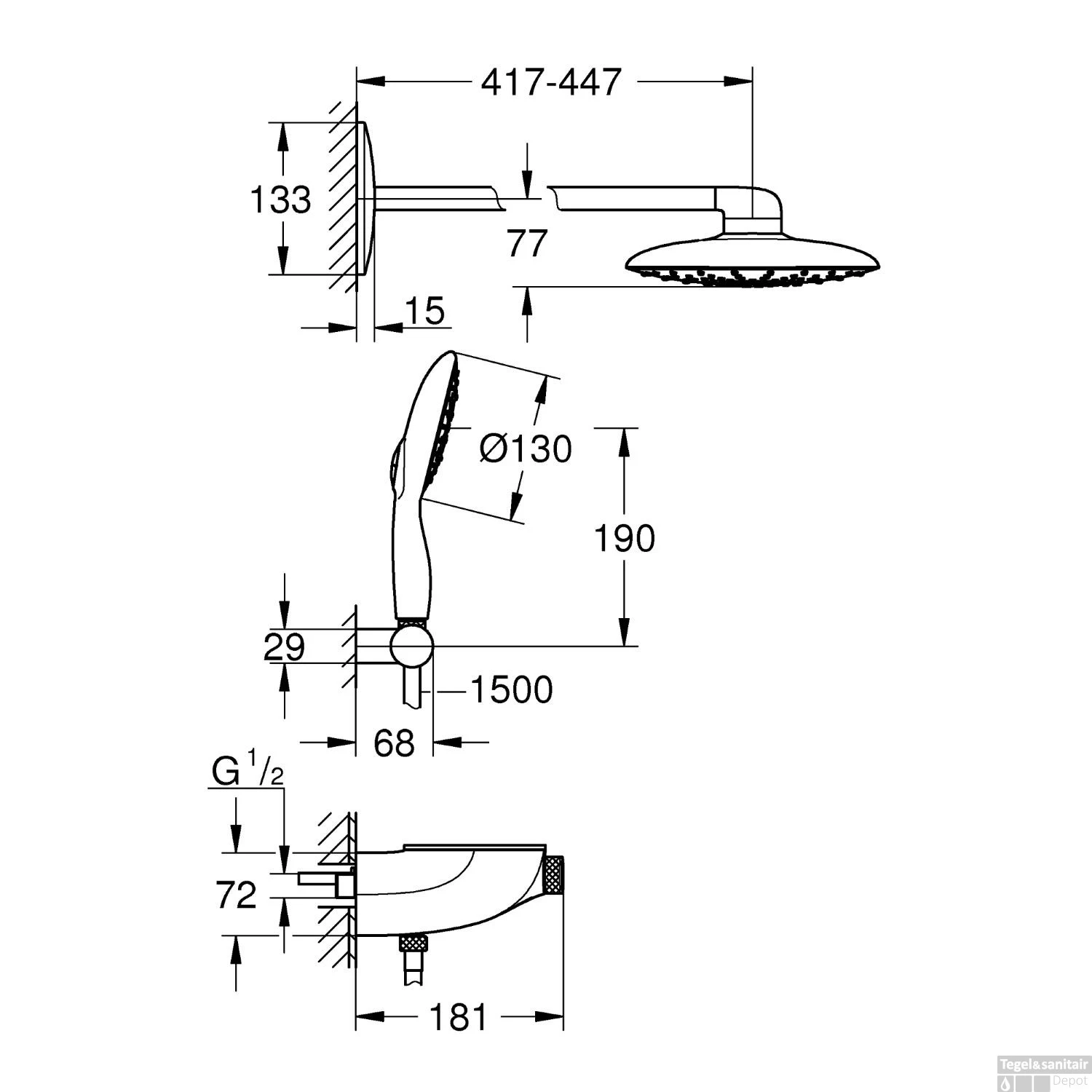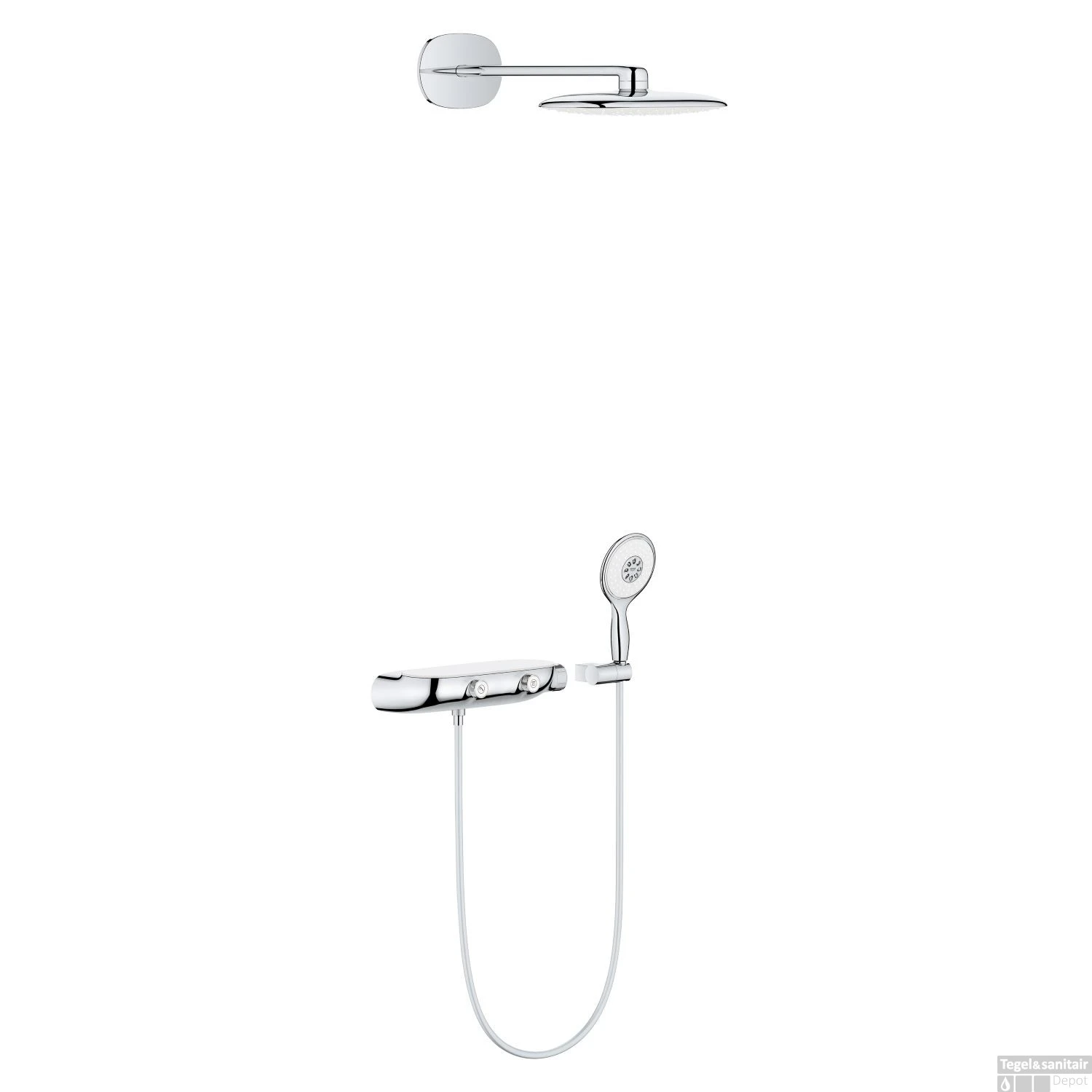 – GROHE Rain O2, Rain, Jet en de Bokoma straal – om je huid te ontspannen en op te frissen. Om het je nog makkelijker te maken, kun je de verschillende straalsoorten ook nog combineren. De geïntegreerde GROHE TurboStat technologie houdt de temperatuur de hele tijd constant voor ultiem comfort en veiligheid. De GROHE SafeStop knop zorgt dat jouw gevoelige huid nooit verbrand dankzij het GROHE CoolTouch systeem wordt de buitenkant van de thermostaatkraan nooit te heet om vast te pakken. De waterbesparende GROHE EcoJoy technologie draagt bij aan het milieu. GROHE Rainshower SmartControl – technische perfectie, gefabriceerd in Duitsland. Dit douchesysteem moet geïnstalleerd worden in combinatie met de GROHE Rainshower 360 inbouwbox (26264001) en de GROHE Grohtherm SmartControl inbouwunit (26449000).