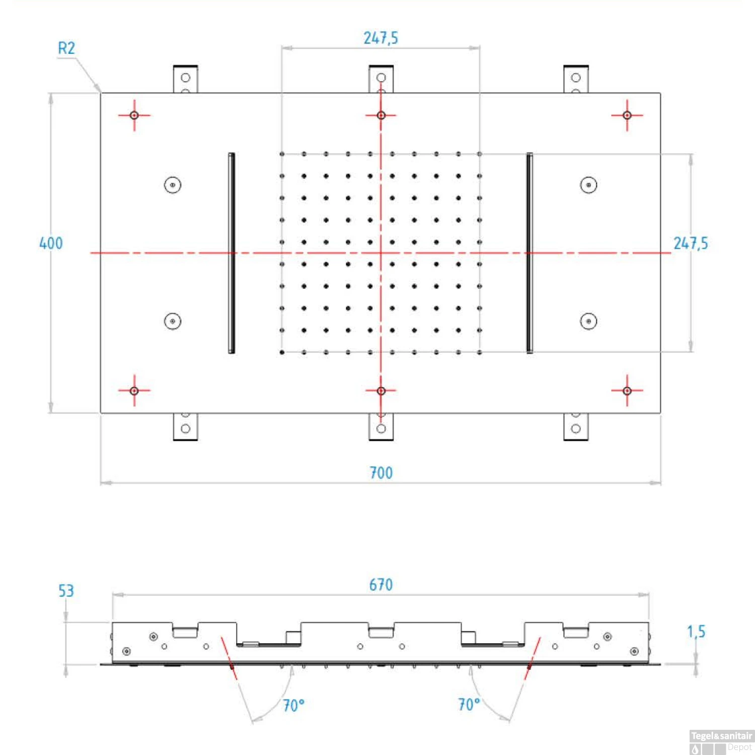 Specificaties Hoofddouche LED It Rain Lagoo Nesso Multi Color LED met 2 Cascades en Nevel Functie 70 x 40 cm RVS Geborsteld Koper PVD: