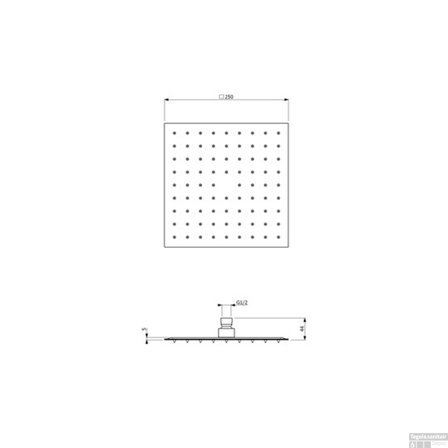 Specificaties Hoofddouche Plieger Napoli Vierkant 25x25cm Zwart: