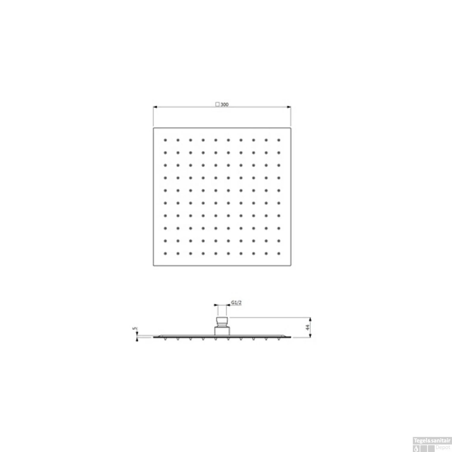 Specificaties Hoofddouche Plieger Napoli Vierkant 30x30cm Chroom: