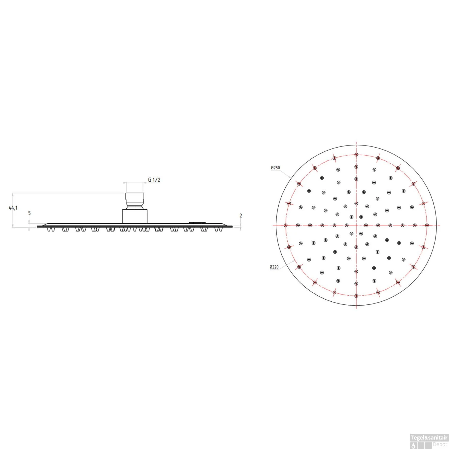 Specificaties Hoofddouche Superslim Lagoo Nesso met Veiligheidsventiel 25 cm RVS Geborsteld Koper: