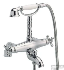 Merk Huber Thermostatisch Serie Croisette Montage Badrand Kleur RVS Sfeerbeeld Nostalgisch Hartafstand 150 Met douchegarnituur Artikelnummer 197CS01HNS Fabrieksartikelnummer 197CS01HNS