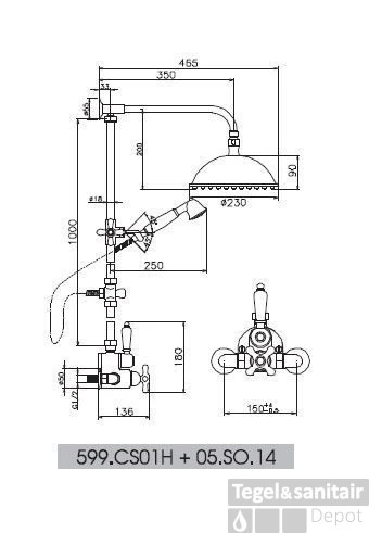 Merk Huber Thermostatisch Hoogte 1000 mm Serie Croisette Sfeerbeeld Nostalgisch Kleur Chroom/goud Artikelnummer 599CS01HCA Fabrieksartikelnummer 599CS01HCA
