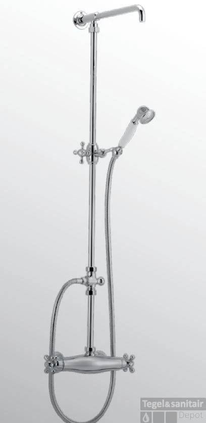 Merk Huber Hoogte 1070 mm Serie Croisette Hartafstand 150 Thermostatisch Sfeerbeeld Nostalgisch Met douchegarnituur Met hoofddouche Kleur Goud Artikelnummer 399CS01HAG Fabrieksartikelnummer 399CS01HAG