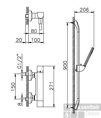 Merk Huber Kleur Chroom Serie Icon Toepassing Douche Hartafstand 150 Thermostatisch Met omstelinrichting Inbouw Sfeerbeeld Design Met handdouche Met glijstang Artikelnummer 190TVL05HCR Fabrieksartikelnummer 190TVL05HCR