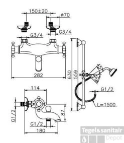 Merk Huber Serie Victorian Thermostatisch Sfeerbeeld Nostalgisch Hartafstand 150 Met douchegarnituur Kleur RVS Artikelnummer 192VT01HNS Fabrieksartikelnummer 192VT01HNS