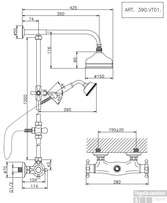 Merk Huber Serie Victorian Thermostatisch Diameter hoofddouche 150 mm Kleur Goud Sfeerbeeld Nostalgisch Artikelnummer 390VT01HAG Fabrieksartikelnummer 390VT01HAG