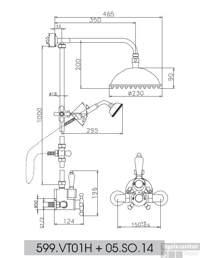 Thermostatisch Merk Huber Serie Victorian Kleur RVS Sfeerbeeld Nostalgisch Artikelnummer 599VT01HNS Fabrieksartikelnummer 599VT01HNS