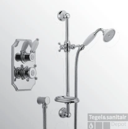 Met hoofddouche Sfeerbeeld Nostalgisch Serie Victorian Inbouw Thermostatisch Met douchegarnituur Merk Huber Kleur Chroom/goud Artikelnummer 910VT01HCA Fabrieksartikelnummer 910VT01HCA