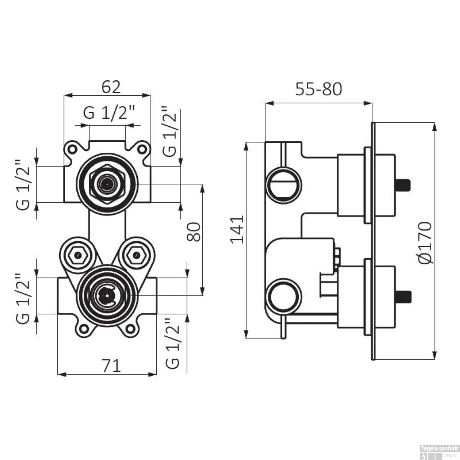 Specificaties Inbouw Douchekraan GRB Aura Thermostatisch 3-Wegs Zwart: