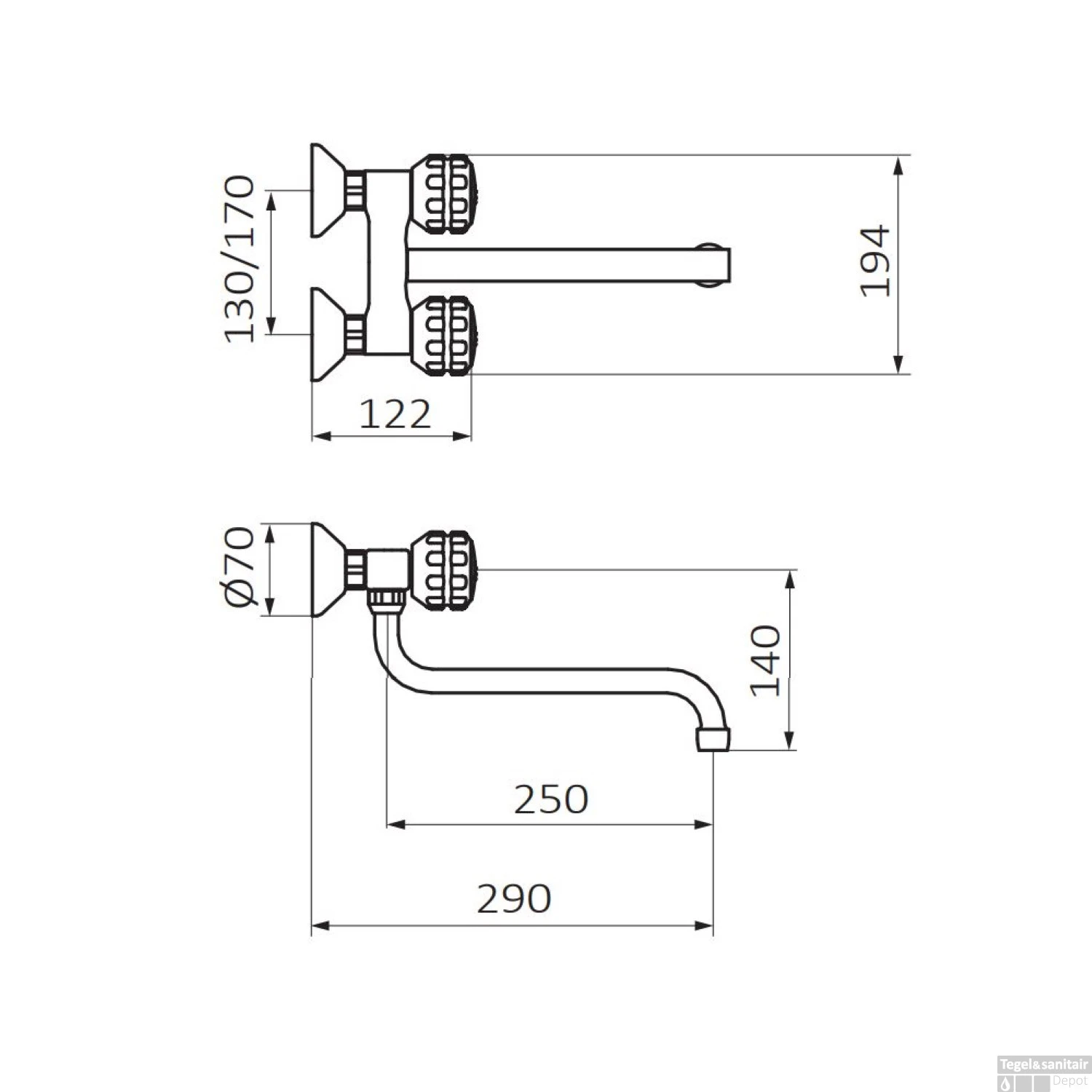 Specificaties Inbouw Keukenkraan GRB Kitchen Mengkraan Twee Bedieningsknoppen Messing Chroom: