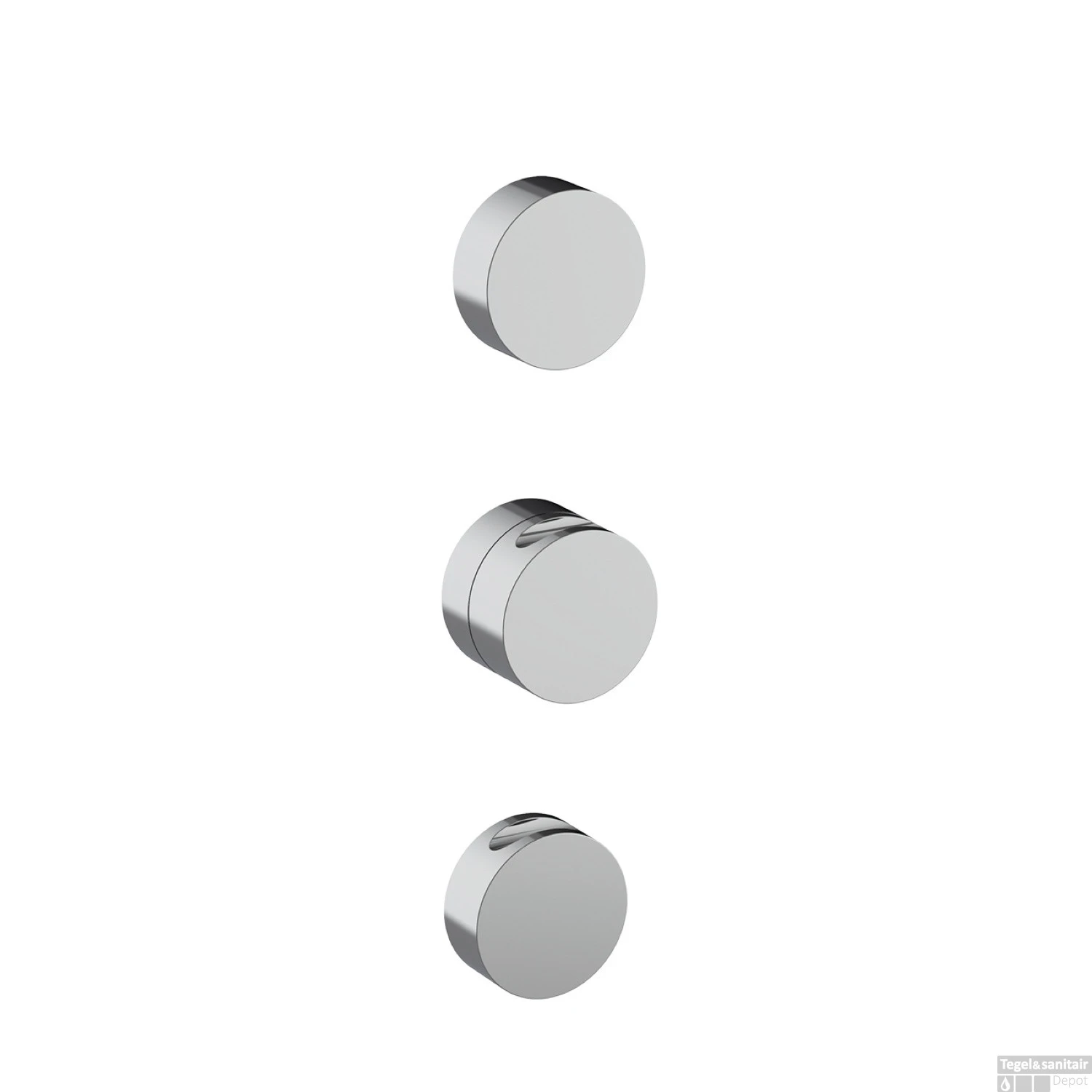 Deze thermostatische kraan is van het merk GRB en behoort tot de serie InCool. U kunt deze thermostaatkraan gebruiken in zowel de douche als in combinatie met uw een ligbad in de badkamer. Het betreft een 2-wegs thermostaatkraan die u kunt combineren met een bijpassend inbouwdeel die u onderaan de webpagina tegen een meerprijs toe kunt voegen. De ronde knoppen beschikken over een diameter van 8 cm en dient u verticaal bovenop elkaar te bevestigen.