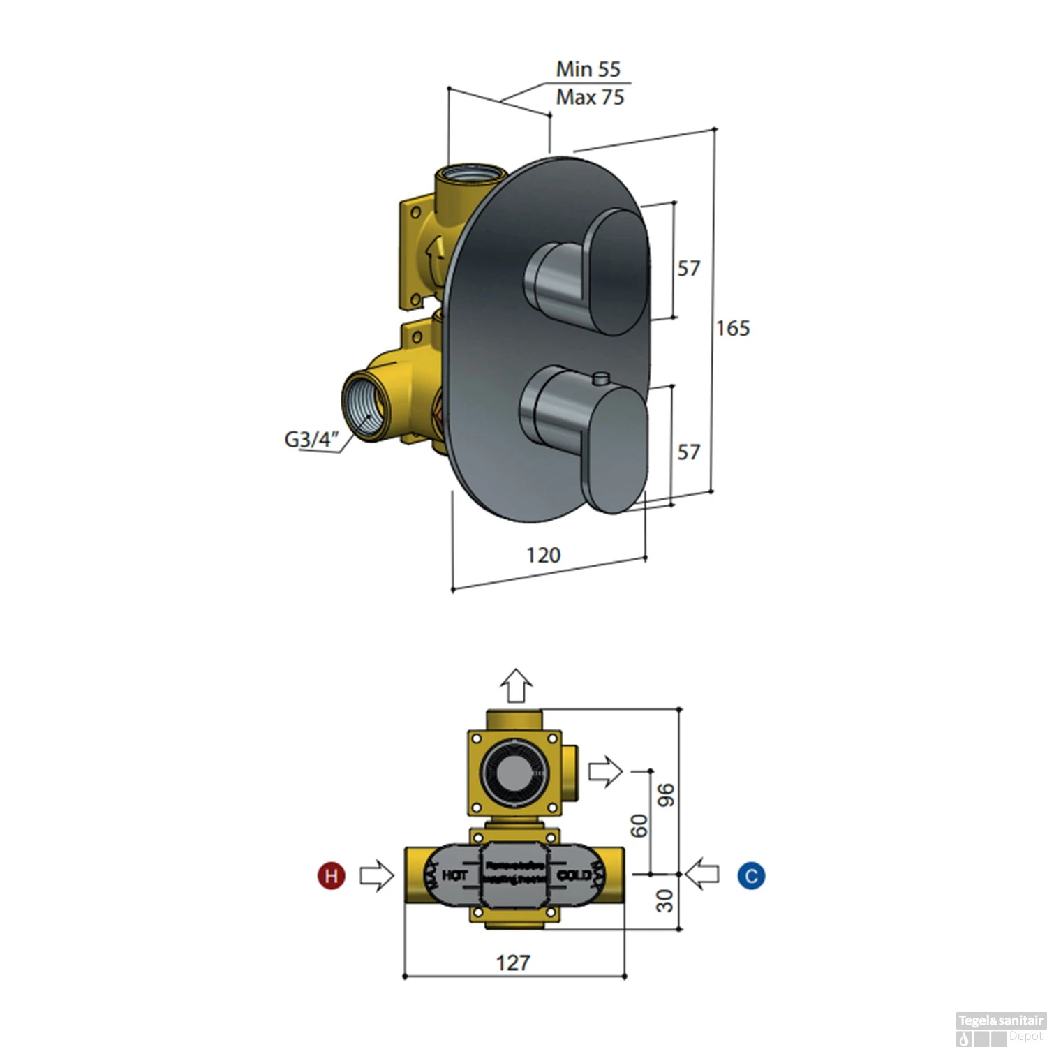 Specificaties Inbouw Thermostaatkraan Hotbath Friendo 2-weg Chroom: